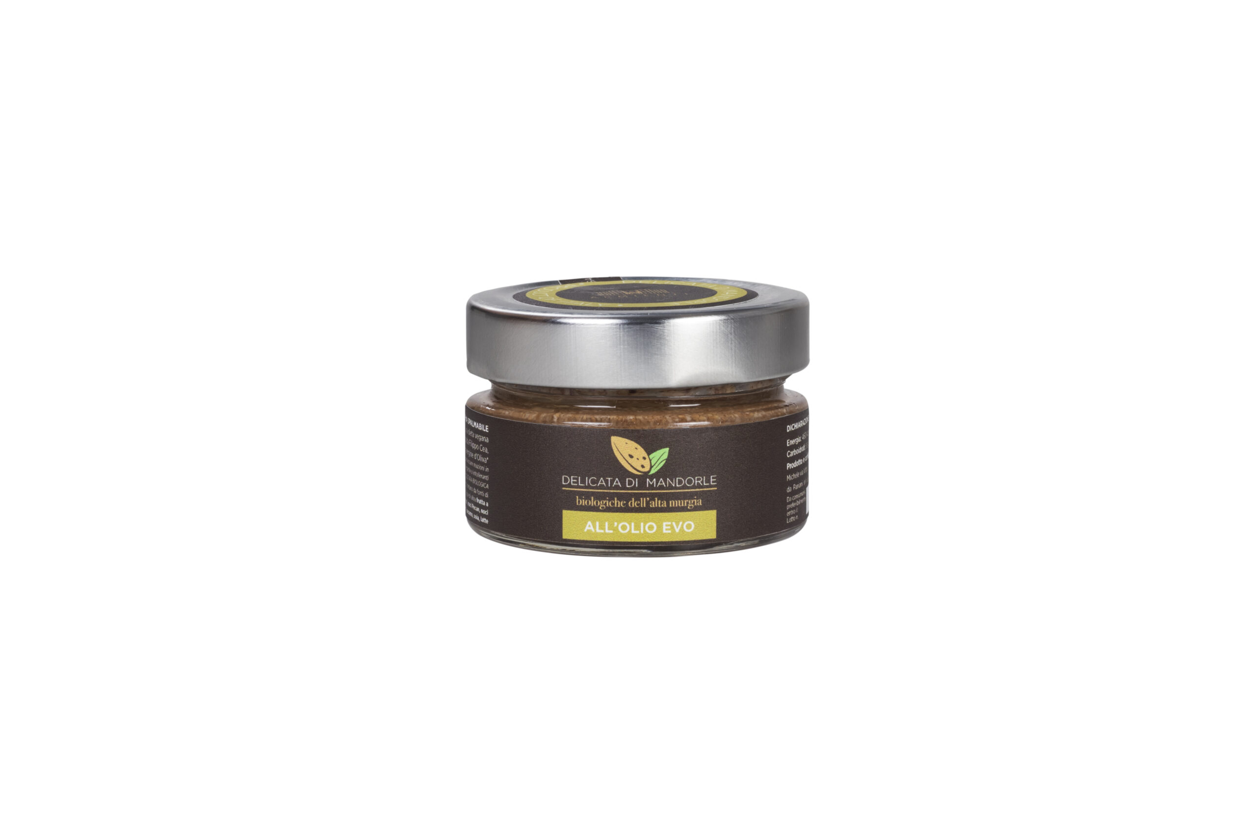 Ingredienti: mandorla sgusciata e tostata (95%)*, Olio d’Oliva Extravergine (5%)*